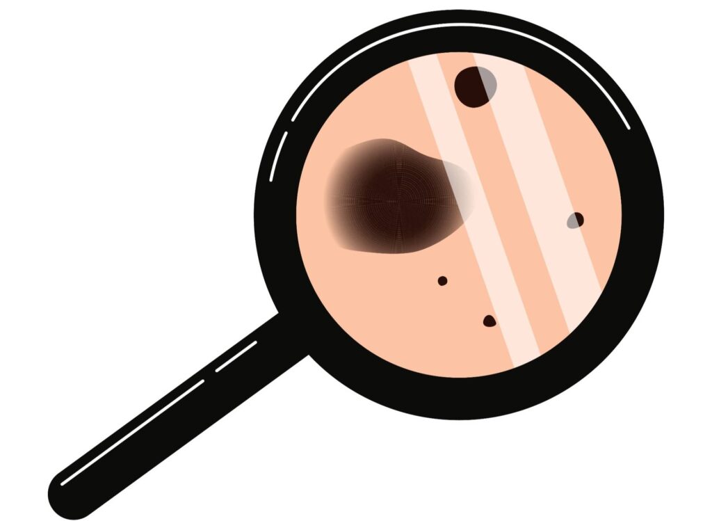 Стоит обратить внимание, не изменились ли границы родимых пятен. Родинки или пятна с неровными, зубчатыми или размытыми краями могут быть признаком меланомы.